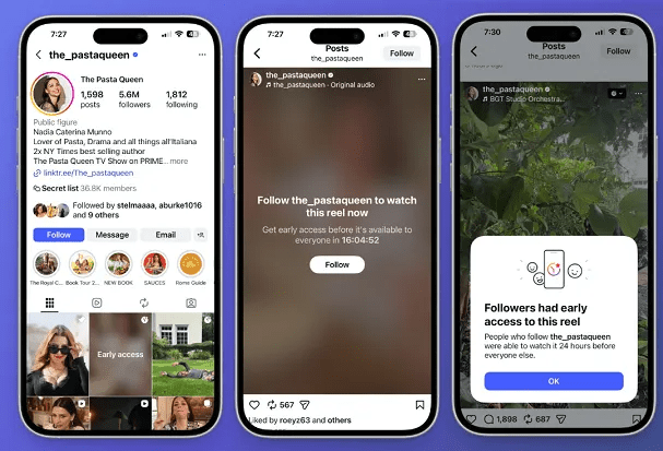 Instagram is testing a feature that allows creators to lock Reels for the first 24 hours, making them exclusive to followers. Non-followers are prompted to follow to unlock the content.
