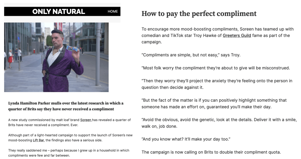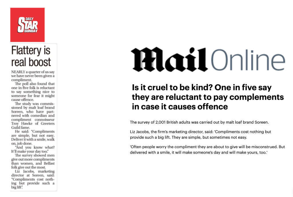 The campaign was integrated with PR marketing – commissioning a study which unveiled the nation’s compliment habits and offering media the opportunity to master the art of giving a compliment through interviews with Troy.